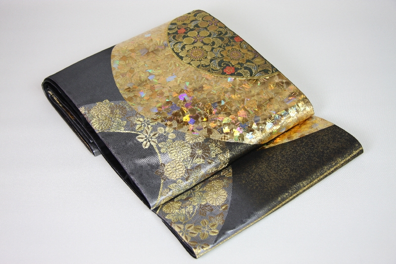 黒箔地プリズム金彩花丸お太鼓柄 290,000円
