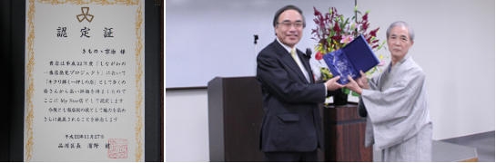 11月27日(土)、マイスター店の認定証授与式が行われました。濱野品川区長より認定証とトロフィーを頂きました。