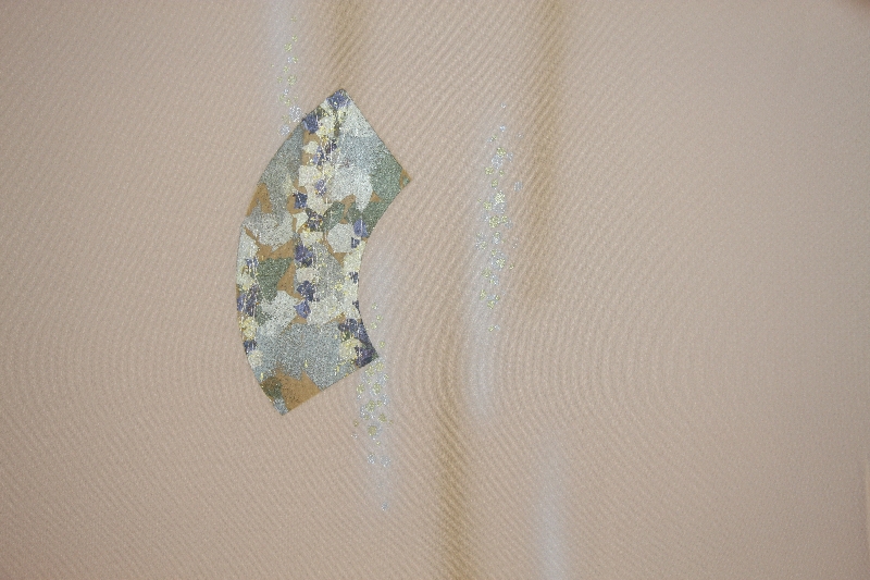 付下げ ベージュ地 箔の地紙と縫花丸模様