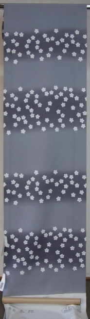 品の良い藤色地に大胆な枝垂れ桜が描かれています。これから桜が咲く時期にかけてお召しになると大変素敵なお着物だと思います。