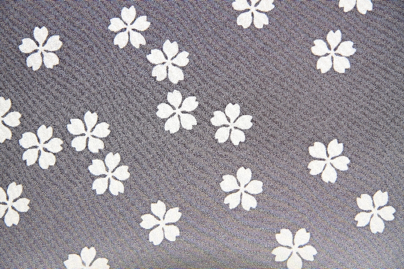 小紋 グレー地濃淡の横段ボカシ 白小花模様