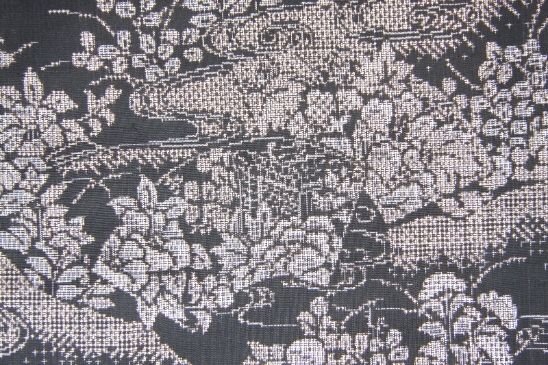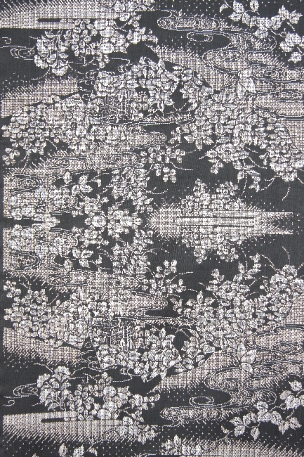 紬 吉三郎作 黒地 霞に花模様 泥大島
