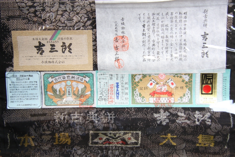泥染め巨匠、吉三郎作の泥大島です。細かい花模様と霞模様が上品な高級感を醸し出しています